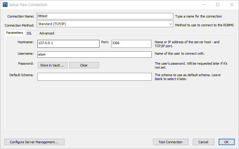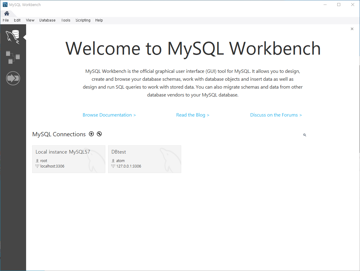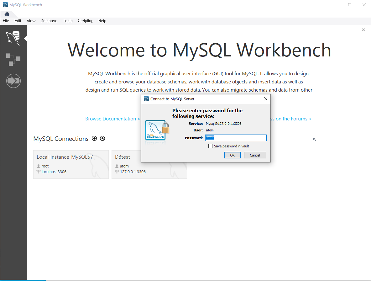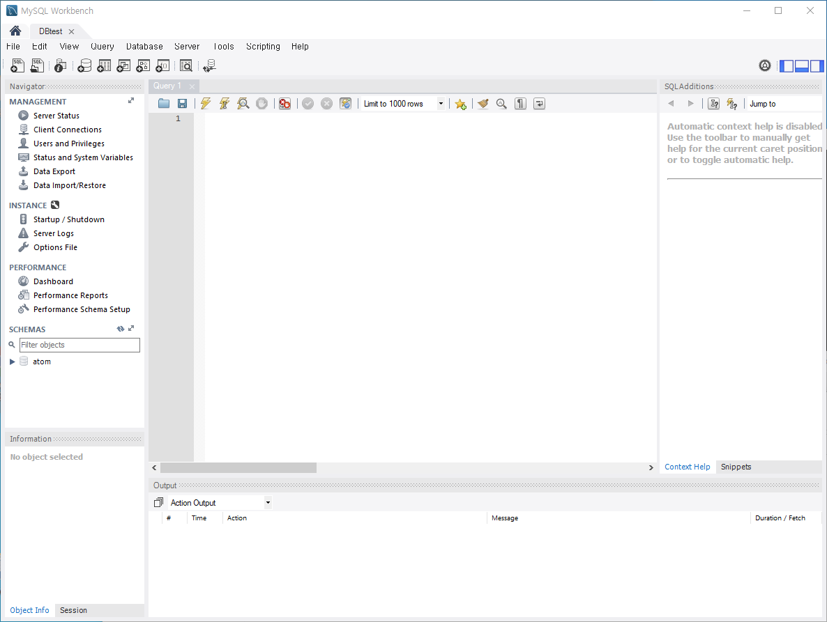 atom DB에 접속한 모습