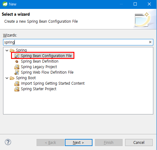 new --> Spring Bean Conrfiguration File 로 파일을 생성하면 자동으로 들어감
