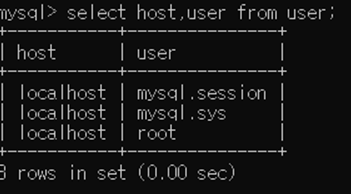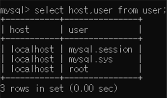 확인 mysql> select host,user from user; [사용자 확인 명령 ]